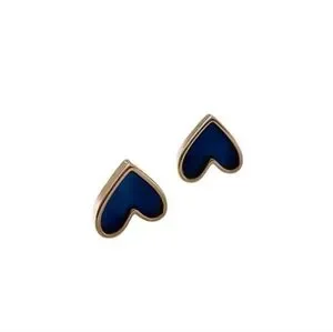 Blue and gold heart shaped stud earrings. These earrings feature a chic heart shape with a striking blue glaze and gold color scheme. Their elegant design makes them a versatile accessory suitable for various occasions. Perfect for adding a modern touch to your jewelry collection.