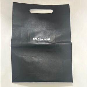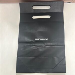 Elegant large YSL black shopping tote bag. Sleek black design. Perfect for any occasion. There are a lot of creases and dents in the middle of the bag but there are no rips or tears and the bag is very strong and sturdy, as all YSL shoppers are aware of. Measurements are: