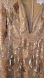 Sheer long sleeves. Short Dress underneath. Long sequin, sheer and lace overlay on top. Gold sequin dangles all over the dress (see video).