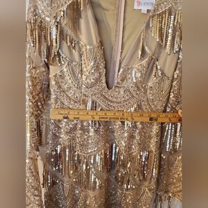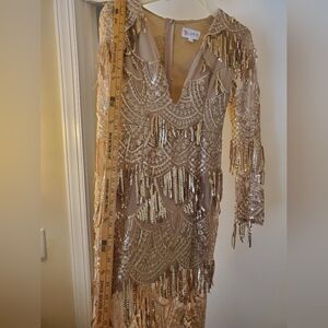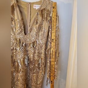 Absolutely stunning! Beautiful Gold sequin, sheer and lace dress.