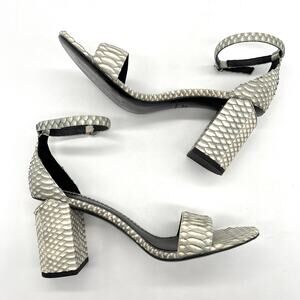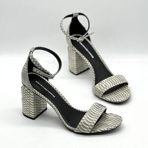 ALEXANDER WANG Abby Snakeskin Tilt Heel Sandal 37.5 Cream Gray Leather Ankle Strap