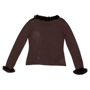 Vintage Joseph A Faux Fur Sweater Womens L Brown 90’s Long Sleeve Silk Blend Top