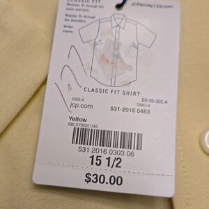 2 size 15 1/2 short sleeve Stafford shirts. 1 orange The everyday shirt classic fit and the other The Oxford shirt in yellow.