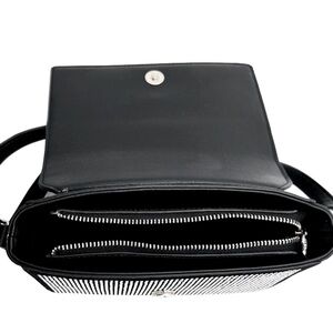 THIS BAG IS FIRE! BLACK ADORNED WITH RHINESTONES. SILVER HARDWARE, ZIPPERED CENTER WITH INSIDE ZIPPERED POCKET. BEAUTIFUL HARDWARE