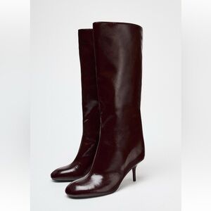 ZARA BURGUNDY TALL SHAFT THIN HEELED BOOTS