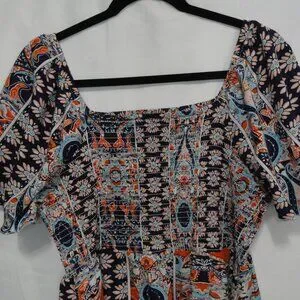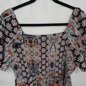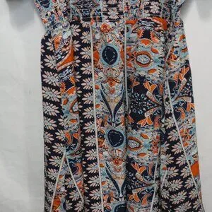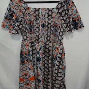 Shein Curve Boho Chic Dress Exotic Blue Orange Shirred bodice Women's Size 1X