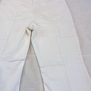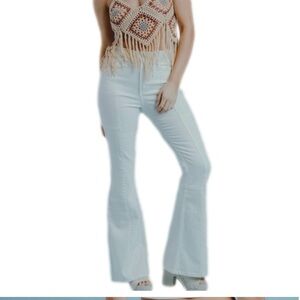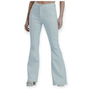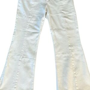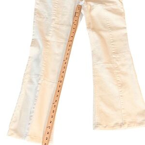 West of Melrose High Rise Patchwork Flare Jeans in Off White Ivory
