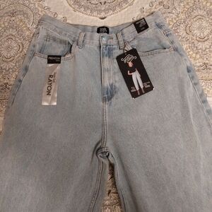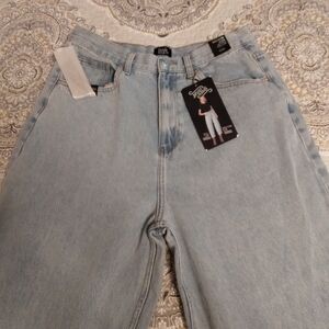 Nwt Simple Society High-rise Barrel Jeans, Baggy Tapered Rolled cuff Light Wash