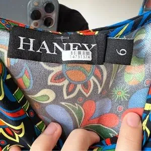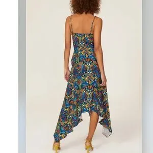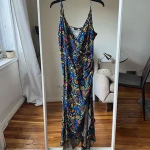 haney olivia faux wrap midi dress size 6 blue orange red yellow CL