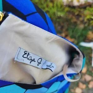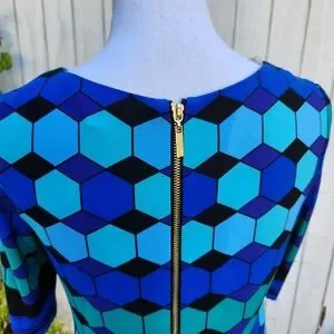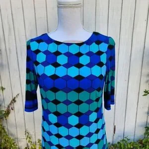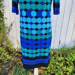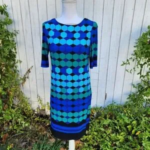 Eliza J Vintage Blue Black Geometric Mod Dress Size 4