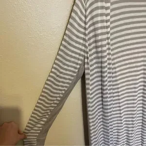 Soma Womens Striped Long Cardigan Size M Open Front Duster Gray Minimalist