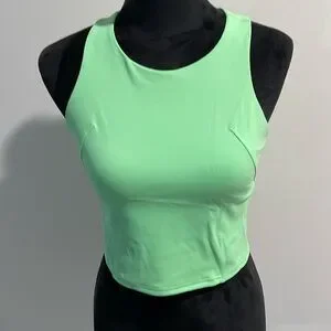 Beautiful tank top by Lululemon, pads can be added since there is a mesh space for it. It has a fitted looked. Only worked 3 times too small for me. Great condition!