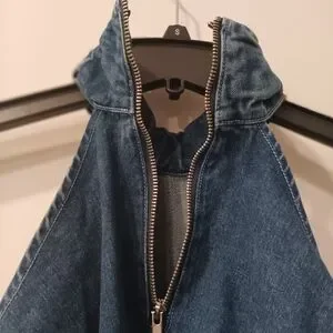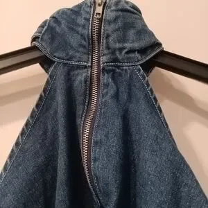 Stylish blue denim top with a chic high neck design. Perfect for girls' nights!