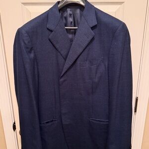 Mint condition E.Zegna 3 button sports coat. Navy / black checked. No tears, rips, stains. Double vents. Non-working surgeons cuffs. Freshly dry cleaned. Not a thrift store item….my personal jacket.