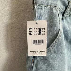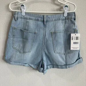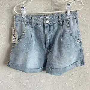 Berthie Light Blue Rolled Denim Jean High Rise "Jonas" Shorts
