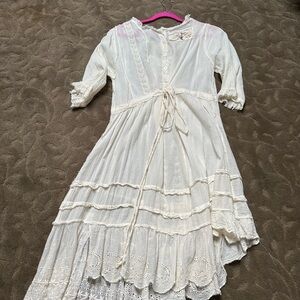 Stunning, magnolia, pearl cream colored cotton dress, irregular him there’s eyelet detail at the bottom size ML