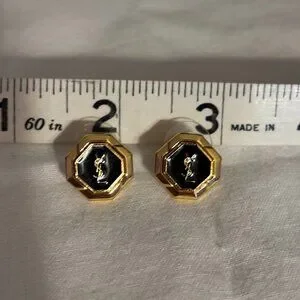 Beautiful YSL Gold Tone / Black Earrings with YSL pouch