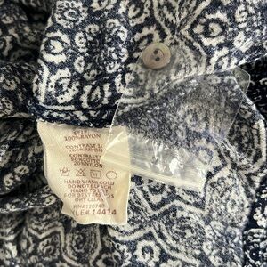 Sweet Boho dress tunic top. Jewel neckline with working 8 Button down the front of the bodice, petite gathers on skirt, puffy Lantern sleeves with gathers at the wrist. Sheer ecru lace at shoulders. Colors of teal, tans, creme and black. Soft gauzy, flowy fabric. Slight stretch, flattering fit. Extra button on manufacturer seam tag attached. Women’s size medium.