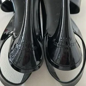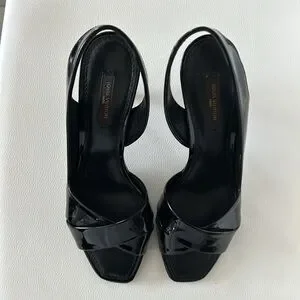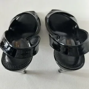 Gorgeous black patent Louis Vuitton sandals with 4” stiletto heels. Vintage edition, never worn comes with 2 extra heel posts. Absolutely elegant and classic. Size 7.5
