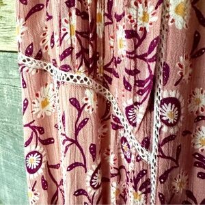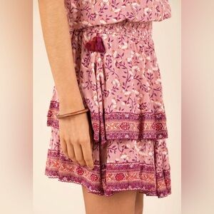 Poupette St. Barth Designer Amora Mini Tassel Dress Boho Floral Pink Cerise Sz S
