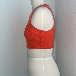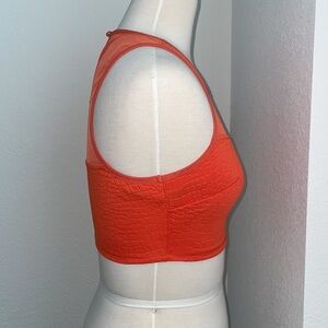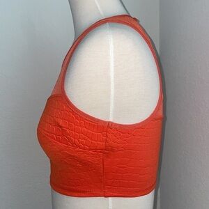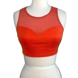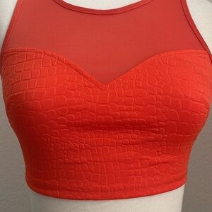 2B BEBE orange animal embossed sweetheart neck mesh crop top with keyhole in XS