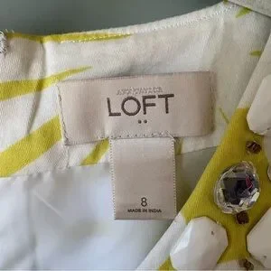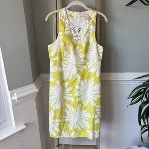 LOFT Outlet Yellow & White Floral Beaded Neckline Dress Size 8
