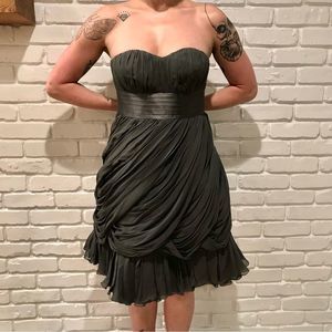 VIVIANNE TAM DRESS SILK GREY GRAY LAYERS FLOWY BABYDOLL SWEETHEART STRAPLESS