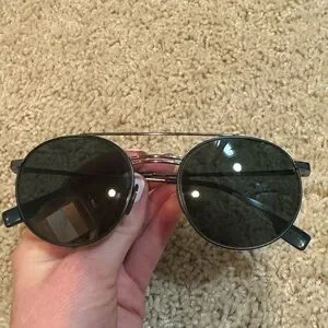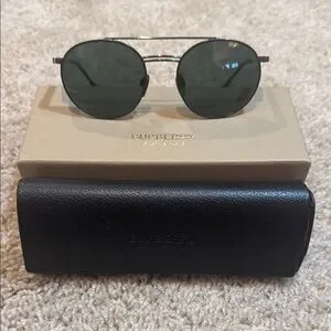 Stylish Burberry sunglasses. Good used condition. Metal design. Some minor scratches and wear on glasses and lenses. Comes with a black case and original box. No cloth included.
