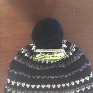 NWT Brand new, never worn Turtle Fur black, gray&white fleece lined pom pom hat