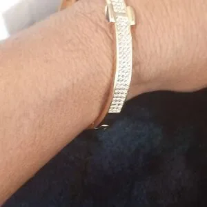 Look like a Celebrity with our 18K white gold plated bling bracelet which is the perfect accessory to wear everyday for any occasion. Get complimented from everyone wearing this high polish gold plated crystal bangle.
