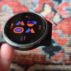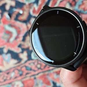 Stay connected with this sleek black smartwatch. Perfect for tracking your fitness and staying updated. In really great condition, everything works. Minimal general wear scratches. when you're wearing the watch you don't notice them. Comes with original Garmin band and a universal charger cord.