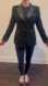 Georgie Armani, black ribbed tuxedo jacket with satin detail and large geometric buttons