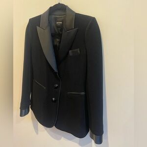 Georgie Armani, black ribbed tuxedo jacket with satin detail size 4