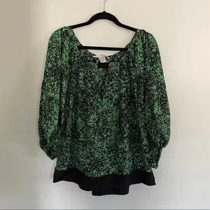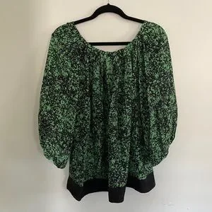 Diane von Fürstenberg Silk Blouse Puff Sleeve Green Splatter Print size Small