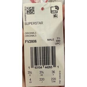 Adidas FV2806 Original Superstar Sneakers White, Blue Red Kids Size 4 New NWT