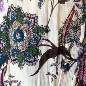 This dress has the most unique colors & pattern! Faux wrap style top with elastic waist and matching string belt. The bottom is open tulip wrap with a slightly high-lo hem. Looks awesome with booties for spring & fall or sandals for summer!