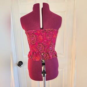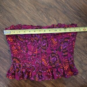 Free People Floral Pleated Ruffle Faux Corset Crop Tube Top