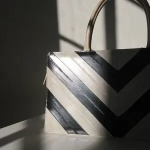 1960s Lee Sands Black and White Chevron Eel Skin Handbag