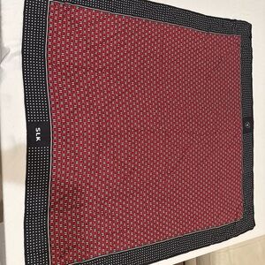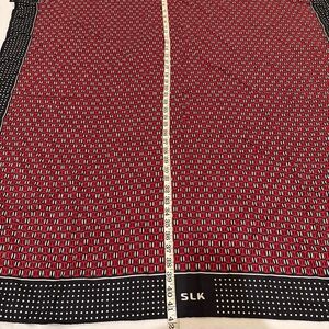 Stylish SLK scarf with a vibrant red and black pattern. Perfect for adding a pop of color to any outfit.