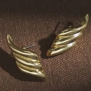 Elevate your style with these sleek 18K gold ribbed wing earrings. Crafted with a minimalist aesthetic, these earrings add a touch of modern elegance to any outfit.