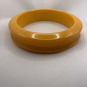 Vintage Chic Yellow Bakelite Bangle Bracelet. Deep Set Groove In Center.