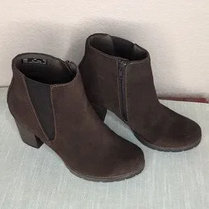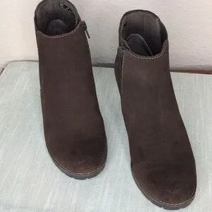 Clarks brown suede bootie. Size 8. Some scuffing on toes (see pictures).