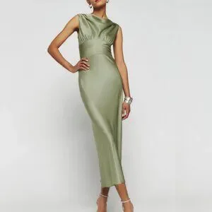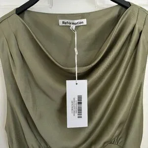 Reformation Dessa Dress NWT Midi Long Artichoke Green Maxi Cowl Neck Cocktail 4