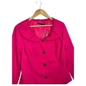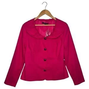 Chadwicks Blazer Women's Pink Linen Jacket Peter Pan Collar Metal Button