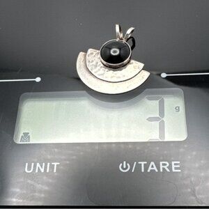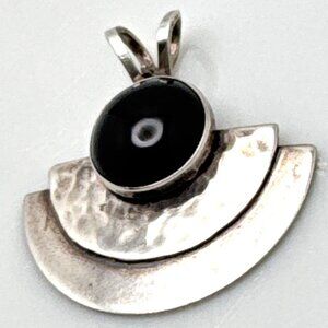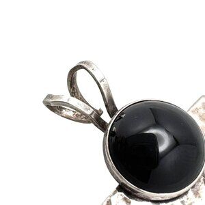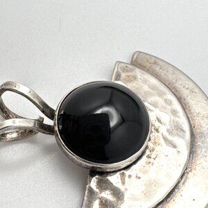 Modernist Half-moon Handmade Pendant Black Onyx Natural Stone 925 Sterling Silver Round Onyx