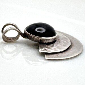Modernist Half-moon Handmade Pendant Black Onyx Natural Stone Sterling Silver