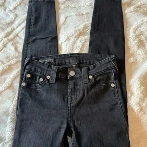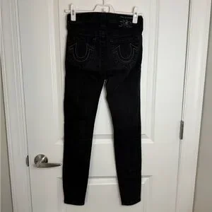 True Religion Halle mid rise super skinny jeans in black. Size 26 and in great used condition. No noticeable flaws.