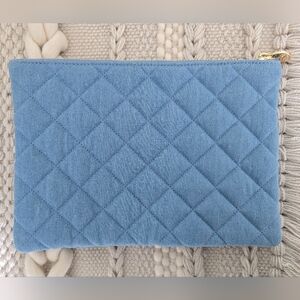 Stoney Clover Lane blue jean puffy quilted denim flat pouch