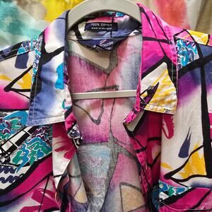 VTG Daniel Hechter 100% cotton colorful Hawaiian surf sail button-down shirt XL