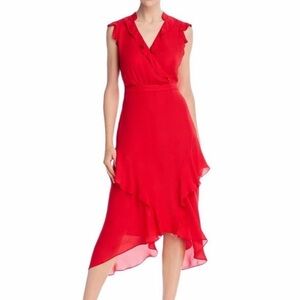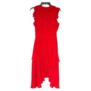 PARKER NEW YORK NWT ATLANTA RUFFLED MIDI DRESS MONACO RED SZ 4